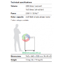Patented ECC - Electronic Capacity Control – indication of the used sheet capacity during shredding process. High-quality wooden cabinet, mobile on castors. Convenient environmentally-friendly\ shred bin (no disposable shred bags required).EBA PAPER SHREDDER 3340 C is suitable for those of you who need speed, accuracy, comfort and security.