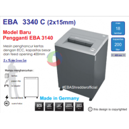 EBA PAPER SHREDDER 3340 C 2x15 mm (replacement 3140 C) with SPS – (Safety Protection System) package: patented, electronically controlled, transparent safety flap in the feed opening as additional safety element;