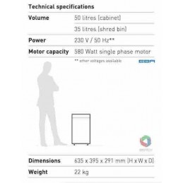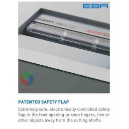 EBA PAPER SHREDDER 1824 C is very secure to support your job because EBA 1824 C is ideal paper shredder that has SPS – (Safety Protection System) package: patented, electronically controlled, transparent safety flap in the feed opening as additional safety element; EASY- SWITCH – intelligent control element indicating the operational status of the shredder , automatic stop if the shred bin is full; electronic door protection via a magnetic proximity switch, ZERO ENERGY standby mode: Complete, automatic disconnection from power supply after 30 minutes.