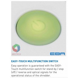 Elemen sakelar multifungsi Easy Multi Touch untuk stand-by / stop (off) / mundur dengan sinyal optik terintegrasi untuk status operasional shredder.