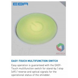 Mesin penghancur kertas deskside yang mudah digunakan untuk pengguna untuk anda yang mencintai lingkungan. Mesin penghancur kertas EBA 1128 C dengan Elemen sakelar multifungsi Multi Touch mudah untuk stand-by/stop (off)/mundur dengan sinyal optik terintegrasi untuk status operasional shredder.